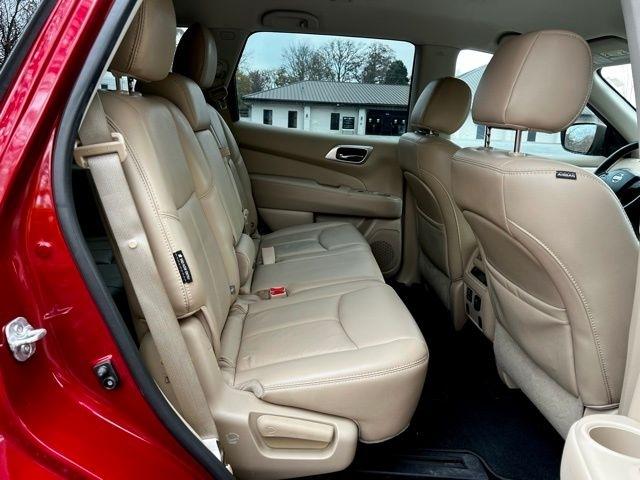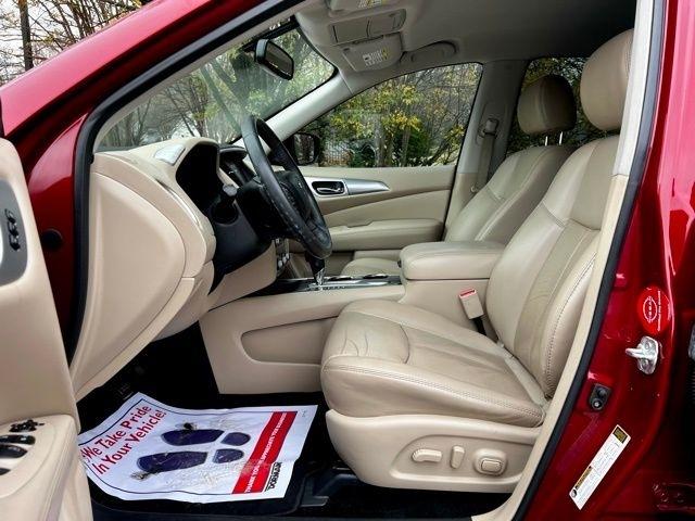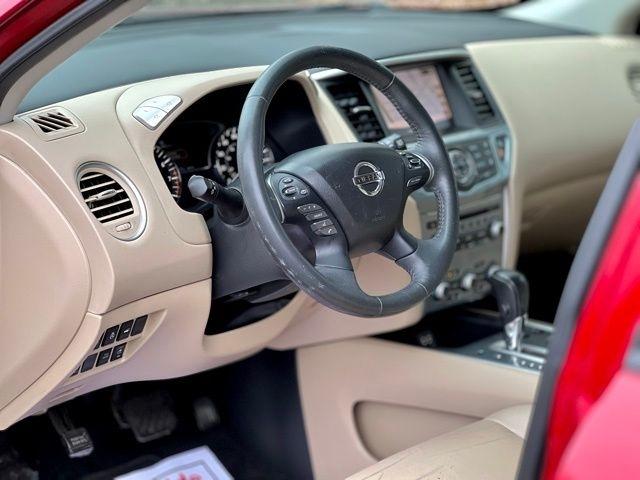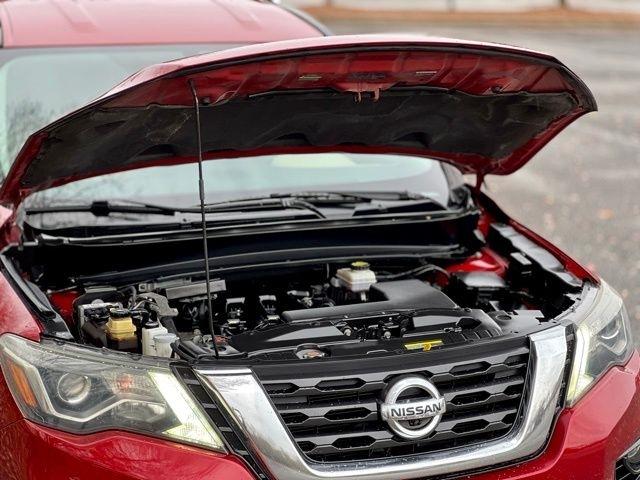 Cruise down the road in style with this vibrant Red 2018 Nissan Pathfinder! This sleek and spacious SUV is not just a pretty face - it's got the Carfax report to back it up. Take the guesswork out of buying a used car and feel confident in your purchase with this comprehensive vehicle history report.With its comfortable interior and smooth handling, this Pathfinder is perfect for road trips or just running errands around town. The powerful engine will zip you around effortlessly, while the great fuel efficiency will keep you on the road longer. Whether you're hauling groceries or camping gear, the ample cargo space has got you covered.