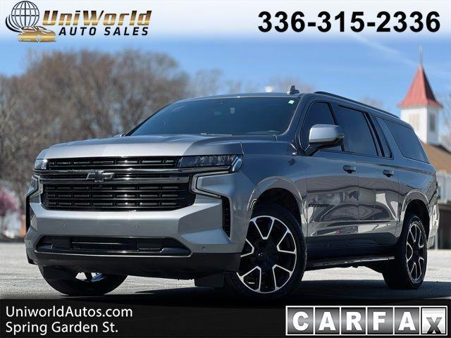 Get ready to ride in style and comfort in this sleek Gray 2022 Chevrolet Suburban! This spacious SUV is perfect for all of your adventures, whether it's a weekend road trip or simply running errands around town. The powerful engine will have you zooming down the highway with ease, while the luxurious interior will make you feel like you're driving in first-class.But wait, there's more! This Suburban comes with a carfax report available, so you can hit the road with confidence knowing the vehicle's history is crystal clear. With plenty of room for the whole family and all your gear, this Suburban is the perfect blend of practicality and luxury. So why settle for anything less?